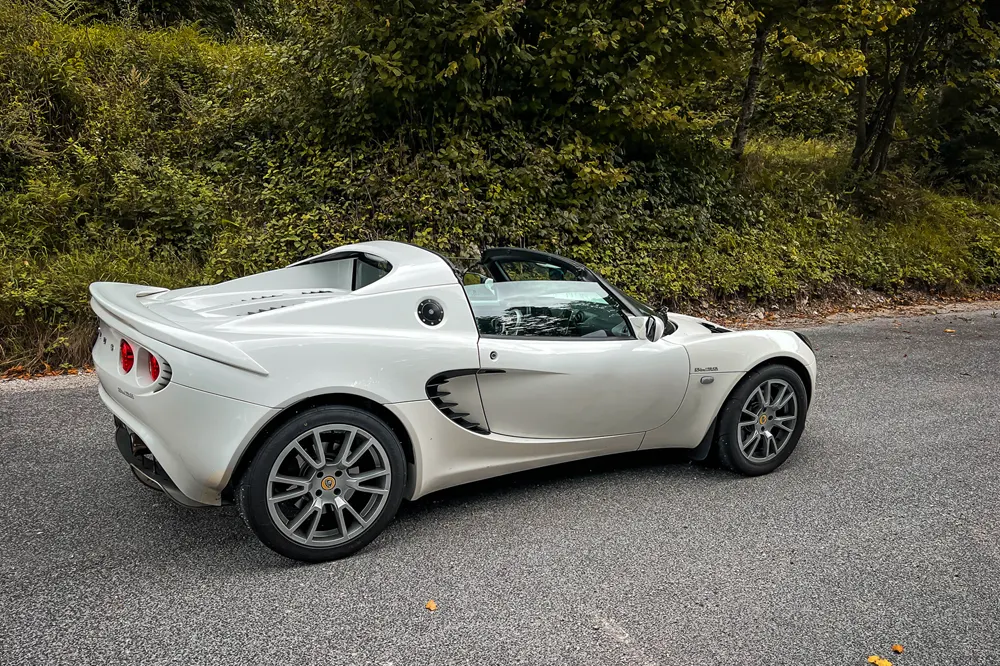 Handling takes a moment to recalibrate. At 870 kg, the Elise weighs almost half of what most cars do, and with double wishbones front and rear, cornering authority comes baked-in. With its 60:40 weight split (mid-engine layout) it holds a neutral line with uncanny precision – until you overcook it and gentle understeer pushes the nose wide. You can brake later than expected, and like a 911, a firm stomp before turn-in shifts the weight perfectly. Ultimately, the handling is a joy all on its own.